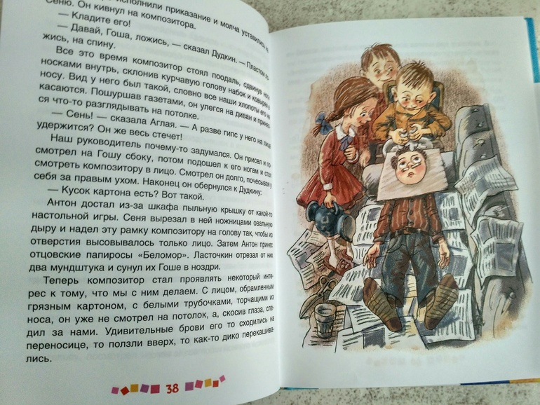 Второй рассказ "Маска" о том, как ребят заинтересовались гипсовой маской и захотели сами такую сделать. Уговорили второклассника, известного школьного музыканта и начался процесс :