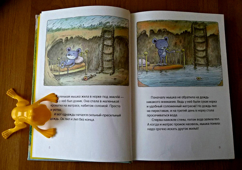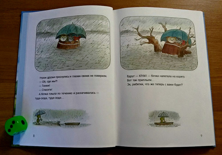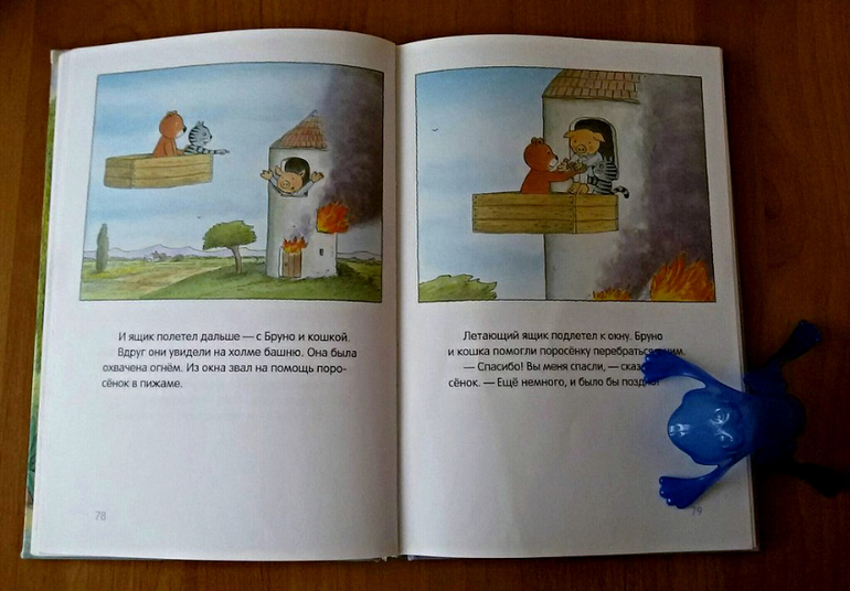 Книгу мы начали читать с двухлетним сыном, обычно перед дневным сном. Он хорошо слушал по одной истории в день. Ему очень нравилось, когда я задавала различные вопросы, на которые он мог ответить, гладя на картинку или просто показав пальчиком.