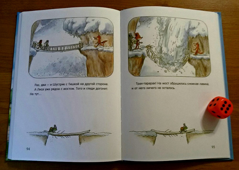 Когда у нас оставался уже последний рассказ, книгу увидела дочка и очень расстроилась, почему это мы читали без нее. И вот тут нам пригодилась вторая функция данной книги, посмотрев ее , дочка не испугалась объема текста и согласилась прочитать ее самостоятельно. А младший братик был рад ее второй раз послушать. Особенно его любимые рассказы про кошку-гонщицу и мышку, летающую на ракете к другим планетам. С меня было взято искреннее обещание, что ко второй книге мы приступим только после того, как они осилят первую часть и слушать ее они будут вместе.