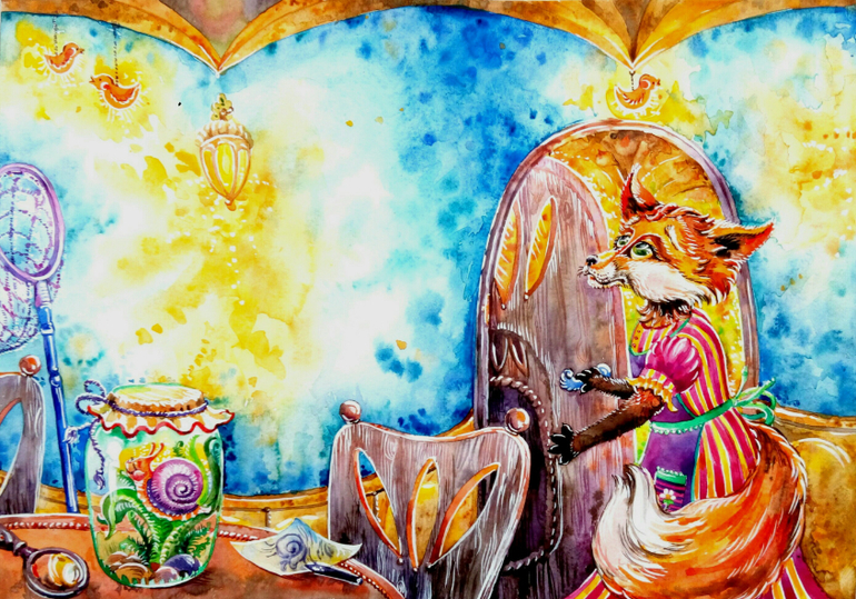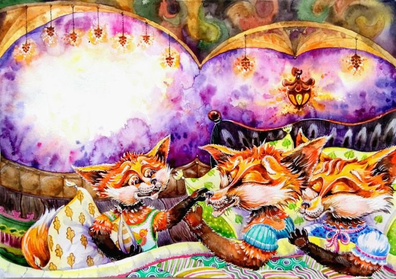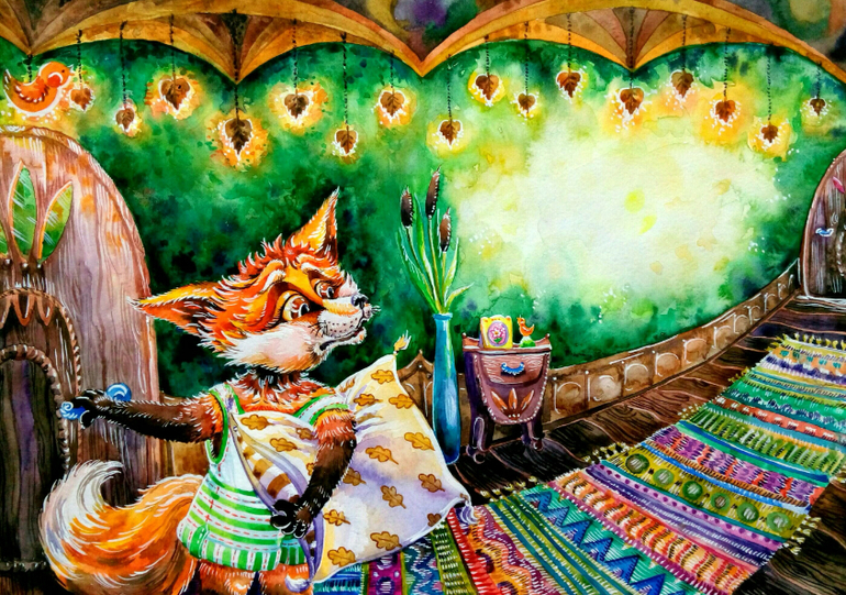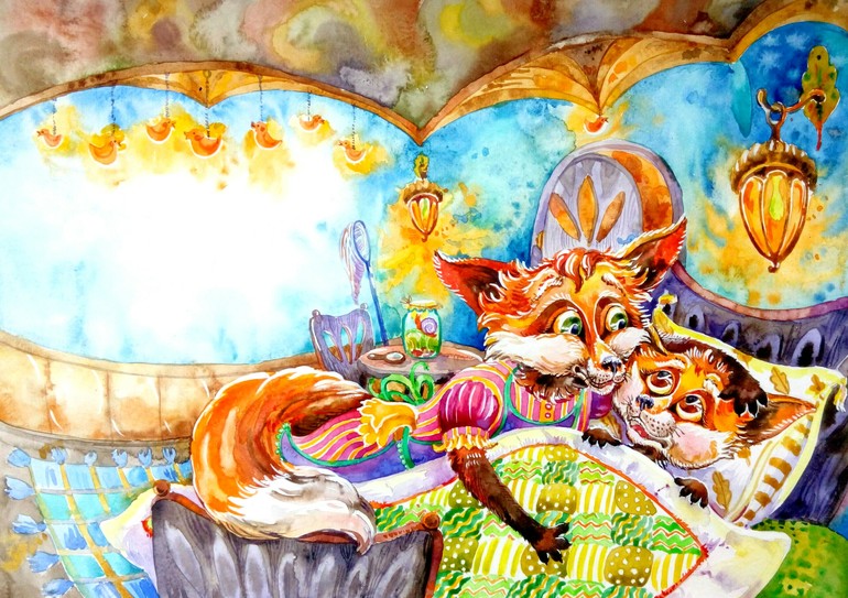 Ради интереса спросила у дочек и сына, вот их мнения:"лисички заболели?","почему так ярко?", "где лисички?, они спрятались?","что у них с глазами?" Не обижайтесь, но даже у меня от буйства красок глаза разбежались, если при печати будет не так ярко, то хорошо.Вот интерьер им понравился, даже пошли свои норки рисовать....Насчет "на любителя", книгу ведь дети читать будут, я заботясь о их зрении такую яркую не купила бы, даже из-за текста. С интересом посмотрела бы на печатный варинт, интересно Вы оставите цвет как есть или прислушаетесь к мнению большинства.