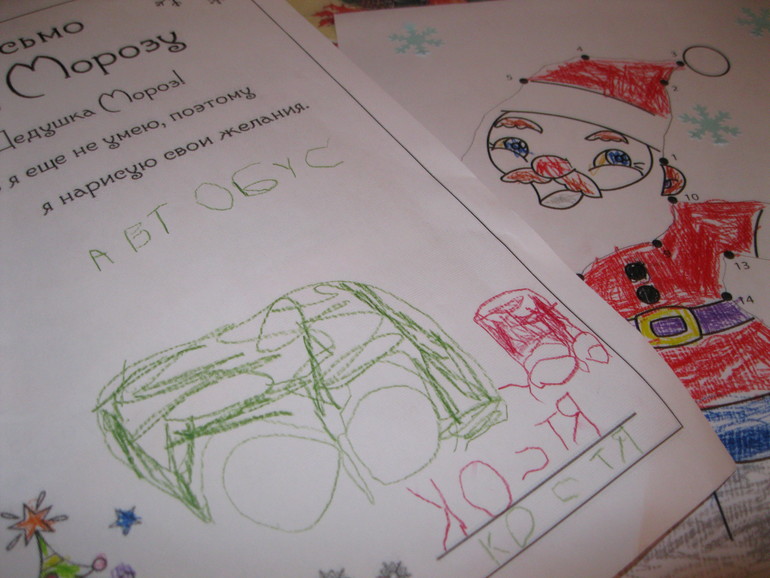 Писали письма Деду Морозу и получали их от него (весь адвент Дед Мороз и его помощники (Снегурочка, снеговики, пес Тузик) писали Косте письма, а Костя их ЧИТАЛ)