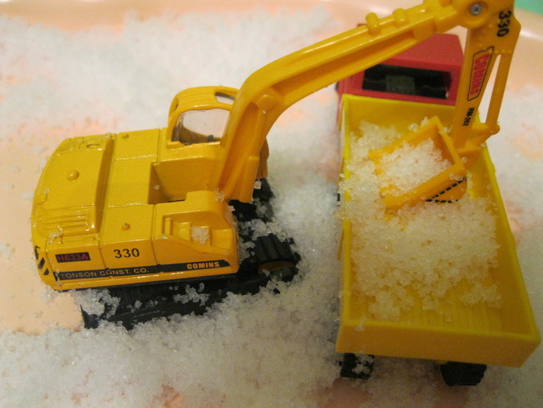 Мы тоже, кстати, с Костей делали. Ну, машины, конечно, привлекли, как без них) Целый вечер человек был занят, счастья выше крыши) Чего только не сделаешь ради счастья ребенка, даже снега немножко)
