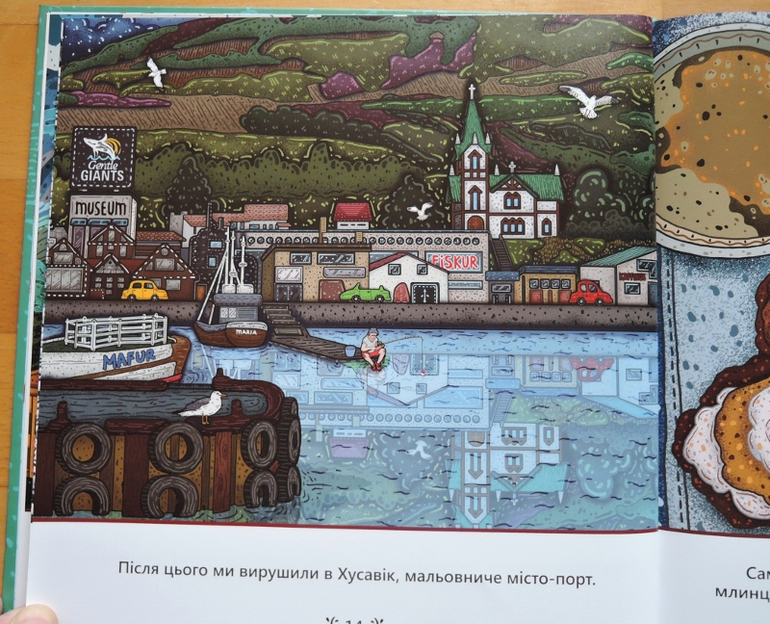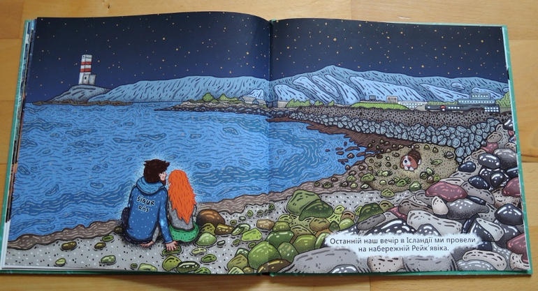 Книга, которую можно разглядывать часами, такие у нее интересные иллюстрации. Язык украинский, текст довольно простой про то, как парень с девушкой путешествовали по Исландии. Удобный формат. У меня она стоит на полке с детскими книгами, к которым есть доступ только с мамой;)) Уж очень мне самой нравится разглядывать эти картинки снова и снова 😍