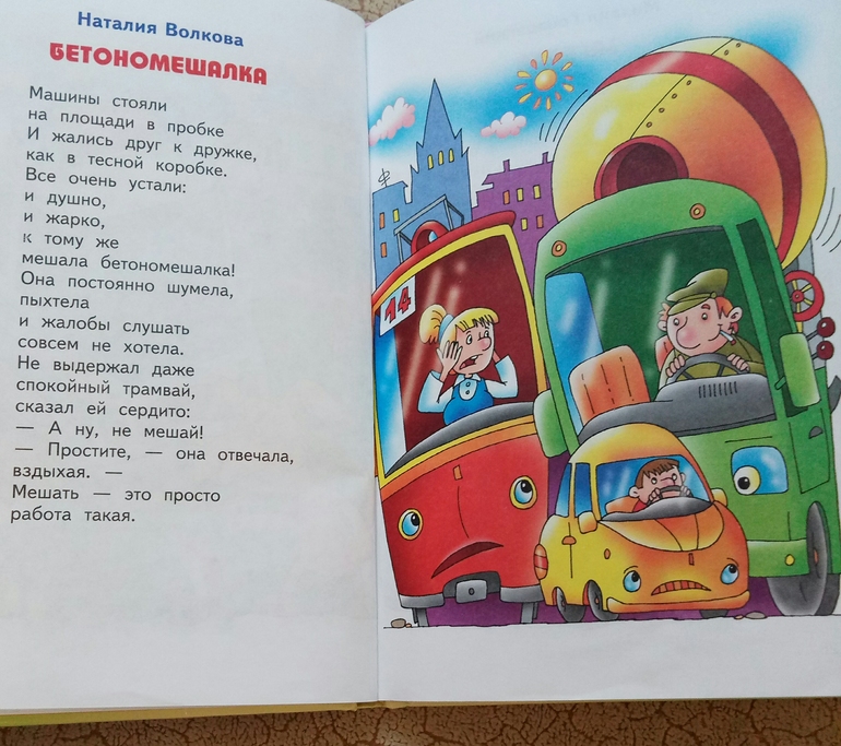 Конечно же , я как любая мама мальчика усиленно скупала энциклопедии про машинки, транспорт, технику, ассортимент таких книг просто огромен, а вот именно книги в стихотворной форме про транспорт встречаются реже. Поэтому я сразу же приобрела этот сборник, несмотря на несколько своеобразные рисунки, к которым я очень быстро привыкла) но зато тут столько транспорта!20 стихотворений именно про тот транспорт, который вы можете встретить на прогулке! потому как не знаю, как у вас, а наши маршруты обязательно проходят вдоль дороги, пешеходного перехода и очень желательно автостоянки)