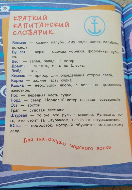 Еще бы инструкцию по завязыванию морских узлов, но и так вполне себе информативная и интересная книжка получилась! И за очень симпатичную цену)