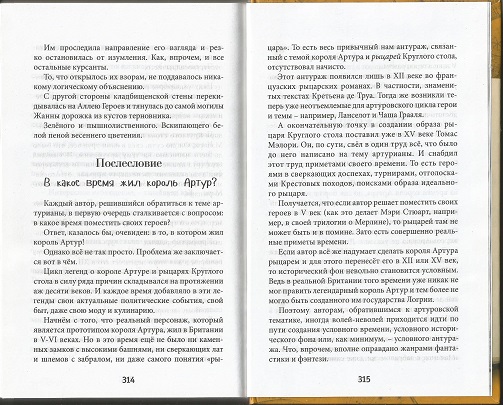 А в послесловии автор рассказывает немного о месте и времени короля Артура в мировой литературе вообще и в ее книге в частности.