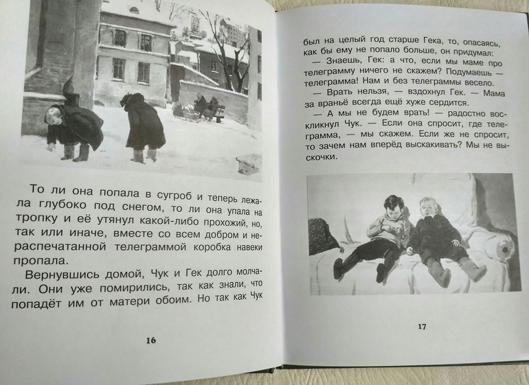 Чук и Гек первый раз Аня читала с папой, осенью,сейчас я предложила взять книгу и тут же дочь начала мне рассказать смешные и яркие моменты из книги. Помнит все! Теперь читала я, и так мне книга понравилась, так душевно, по настоящему все описывается. Эти озорные мальчишки, такие разные характеры, их проделки и ссоры. Мы с Аней невольно начали сравнивать Чука и Гека, с ней и Дашей, пришли к выводу, что Аня больше похожа на Чука, такая же разумно - экономная ( новогодние сладости ест по 1-2 в день аж до 8 марта!!) и как старшая более ответственная.