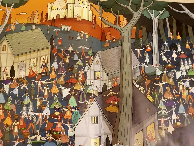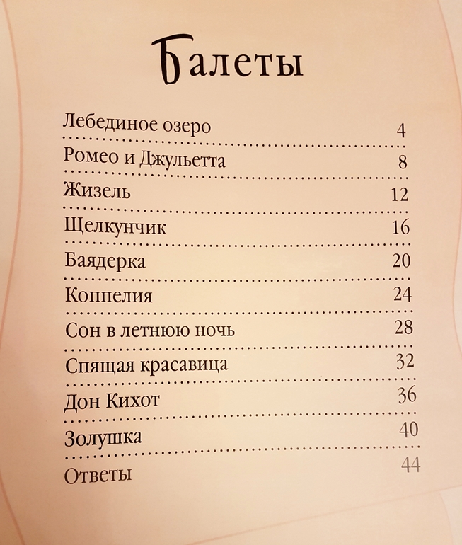 Эта книга достаточно долго лежала в отложенных. Я все никак не могла определиться, надо нам, или нет. И тут рука дрогнула, и само собой нажалась кнопочка "Заказать"))) Не жалею. Ребенок в восторге! Тема балета нам очень близка, и мы большие почитатели этого вида искусства. Плюс,ненавязчиво в игре, можно познакомиться с великими шедеврами. По сути, это сборник либретто к десяти балетам. Все же, что бы полно понять язык танца, и то что происходит на сцене, нужно знать содержание.Очень доступно и легко. Нужно всего лишь разыскать крохотную балеринку, и других героев балета, среди множества фигур. Заодно развивает внимание)
