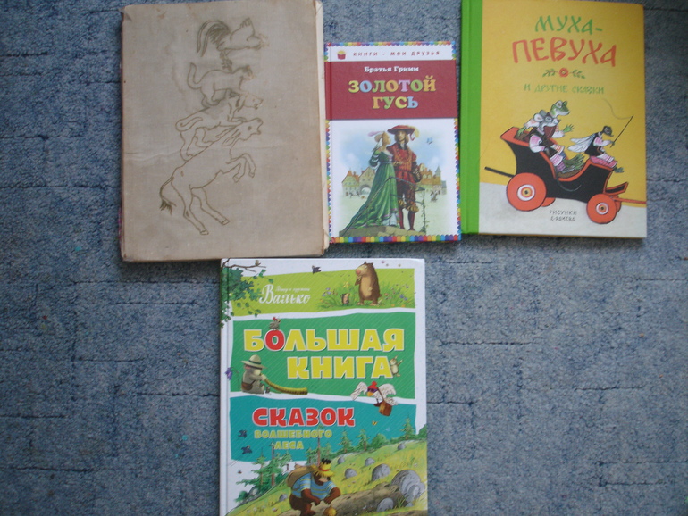 Сборник от "Эксмо" - хорошее дополнение. Мне нравятся иллюстрации. Обработка Полевого. "Бременские музыканты" читаем и в этой книге. Здесь есть немного христианских мотивов. Остальные сказки пока рано. Почитали "Золотой гусь", но она Саньку не впечатлила, поняла, что рано.