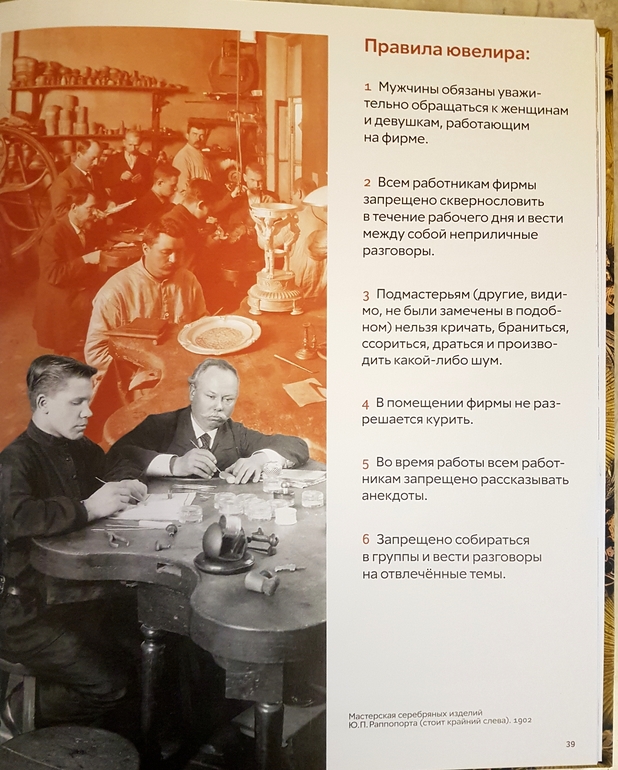 Очень трепетно и с уважением, относился Карл Фаберже к своим работникам, без оглядки на происхождение. Наверное поэтому, на его фабрике никогда не было забостовок. Но при этом в мастерских была жесткая дисциплина, которую рабочие поддерживали и относились с пониманием к требованиям.