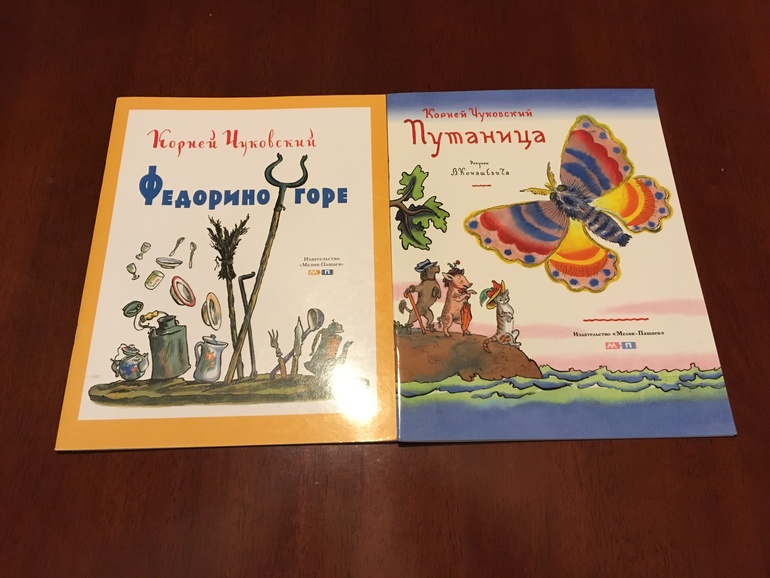 Путаница и Федорино горе от Мелик Пашаев иллюстрации (В.Конашевича) моего детства. Аж сердце защемило когда их увидела. Моя книга ещё читалась старшей доченьке, а потом куда то бесследно исчезла (моя мама дала почитать соседям и нам Ее не вернули). Скрепочки очень хорошего качества, плотные мелованные страницы, сочные краски, ну, в общем то, как всегда у МП.