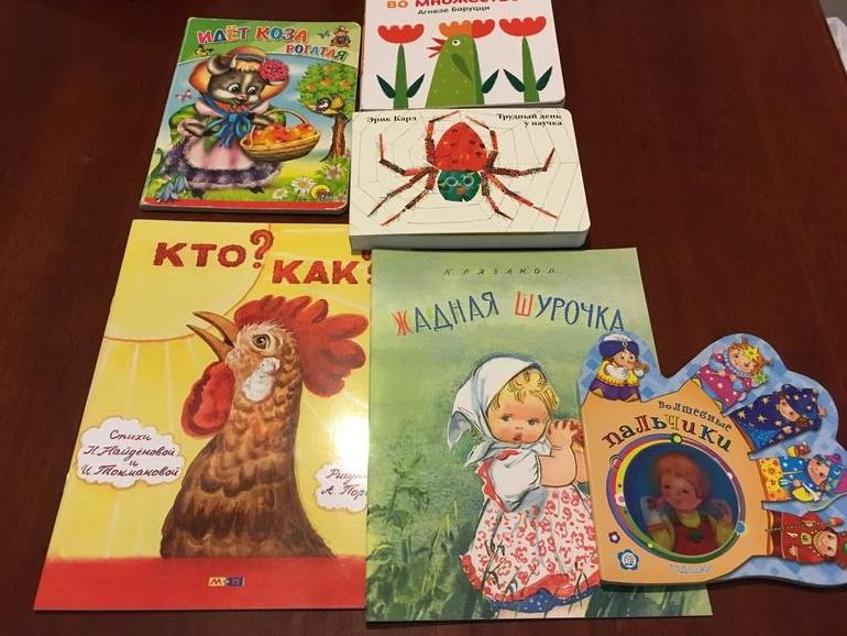 Трудный день у паучка Эрик Карл https://www.labirint.ru/books/593296/ был мною куплен по совету девочки, у которой я покупаю книги, когда бываю в гостях у родителей (в Украине). Очень сомневаласьв целесообразности данной покупки, а оказалось что напрасно. Ну, вот, не понимала я книги,которые дорого стоят, а читать то совсем и нечего. Жаба душила, попросту говоря. Но книга, на все 100% оправдала свою стоимость. Доченька полюбила Ее с первого взгляда. По ней мы начали знакомиться с домашними животными и учиться говорить на их языках, бе, ме, му.... Книга просто неубиваемая (ещё один плюсик). Очень советую мамам малышей к ней присмотреться. Читайте играя !!!