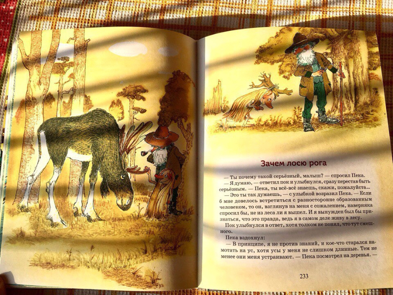 Книга поделена на две почти равные части "Поки" - тут какое-никакое приключение и "Пека", где в основном Пека рассказывает истории Покам. Как сказочная художественная энциклопедия.