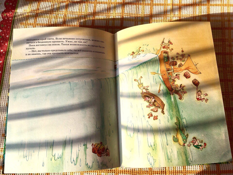 В целом, для нас книжка показалась немного скучной, иллюстрации сильно вытягивают текст. Моему читателю нужно больше экшена, здесь же спокойное и размеренное чтение. Визуально книга мне очень нравится, было приятно и интересно её рассматривать. Мы прочитали 3/4, но дочитывать пока не будем. Тем более, что вторая часть на более старший возраст. 4х летке ещё просто многое не понятно.
