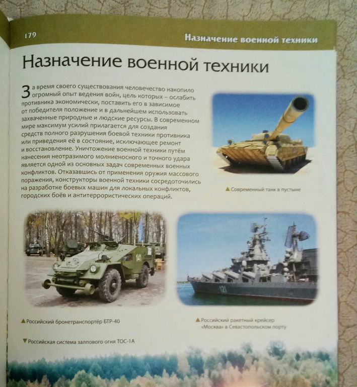 Или вот перед военной техникой сначала идет небольшой рассказ про войны, почему они вообще возникают, и зачем нужна военная техника