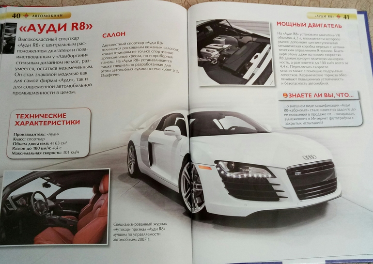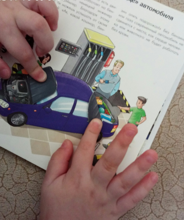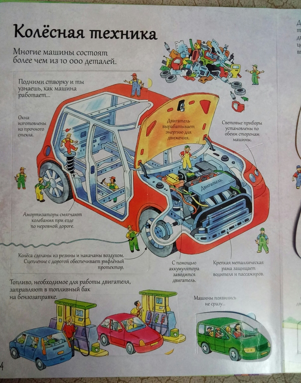 На развороте про автомобили доступно расписано, как машина работает, мне тоже было интересно почитать, я де должна быть в курсе, чтобы отвечать на каверзные вопросы)