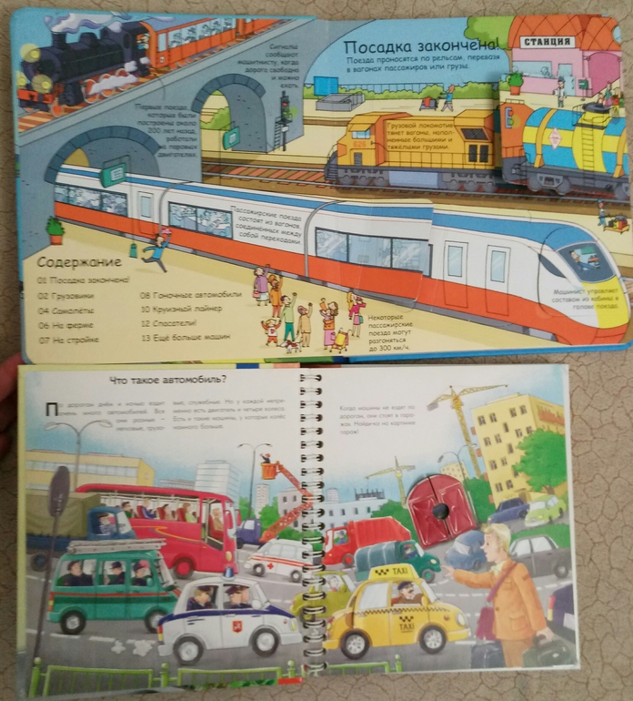 От робинс тут часто показывали развороты, и писали что много опечаток, честно,не знаю) мы ее пока не читаем, просто смотрим, окошки открываем. А вот вторую от АСТ был период читали полностью, и от текста я не в восторге.. но ребенок любит,особенно смотреть, какая машинка в гараже, кто едет в такси, и что лежит в багажнике) тут окошек намного меньше, чем в энциклопедии от робинс, и для начала это, конечно,лучше, глаза не разбегаются