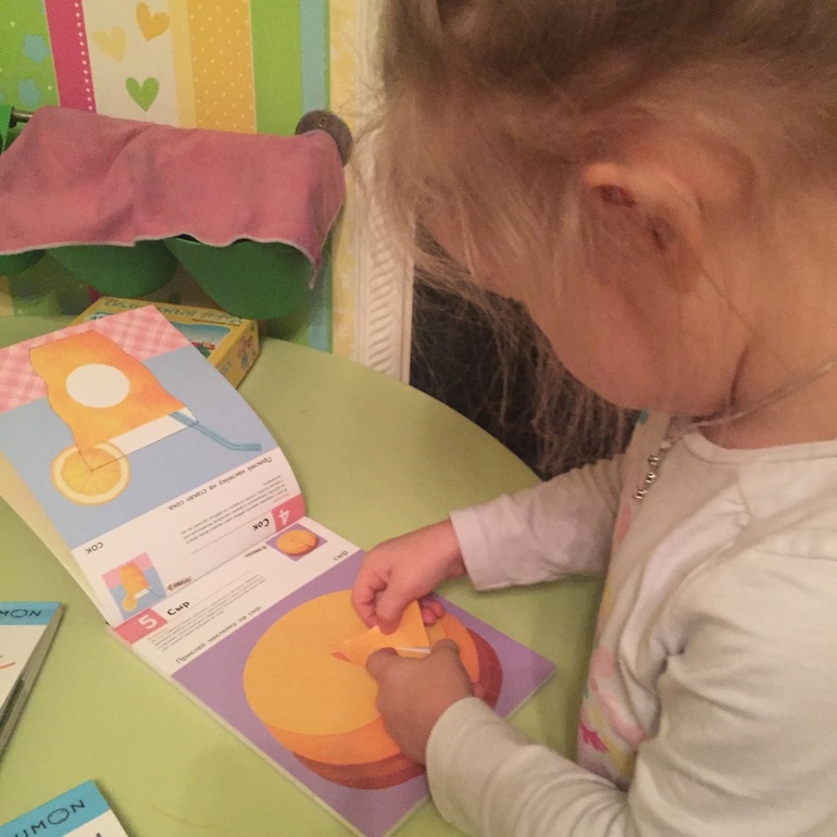 Девчонкам моим 2,3 и 3,10. В нашем распоряжении было 5 книг, которые мы активно изучали долгими зимними вечерами. Три книги были с пометкой от 2-х лет. Все детки разные и даже две моих дочки очень сильно отличаются по развитию. Так, моя младшая очень развитый ребёнок, отлично болтает наравне с сестрой, мгновенно запоминает мелодии, имена и факты, но... не очень то дружит с ножницами и карандашом. Отличный повод потренировать и развить западающие навыки, решила я!