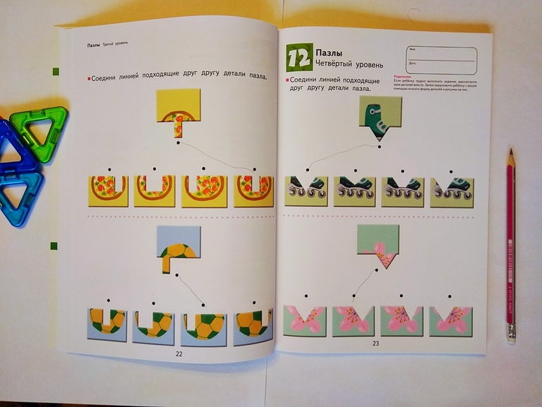 Упражнения из пособия помогут ребенку развить навыки пространственного мышления, что даст хорошую основу для изучения в будущем геометрии, черчения, проектирования.