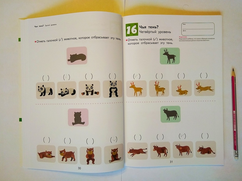 О о целесообразности покупки данного пособия. Задания в пособии крупные, 2 шт. на страницу. И простые, выполняются очень быстро, практически без раздумий, просто поставить галочку. За полчаса можно осилить 20-30 страниц. А это значит, что тетради хватит на 3, максимум 4 небольших занятия. Для меня - не самый лучший вариант. Хотя тетради с заданиями, например, вырезать, сложить, склеить я очень люблю и рекомендую.