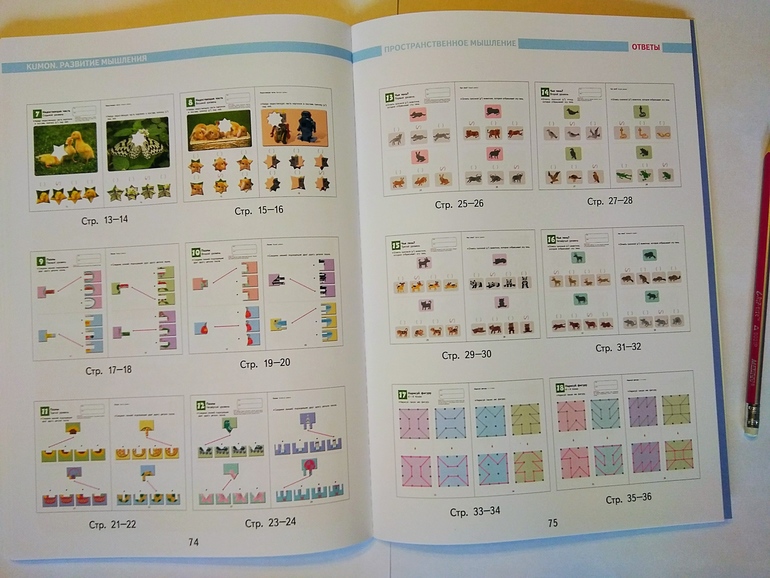 Далее приведу фото страниц KUMON Пространственное Мышление 5+ - самые сложные задания в каждом из разделов, чтобы можно было представить, подойдут ли они вашему ребенку.