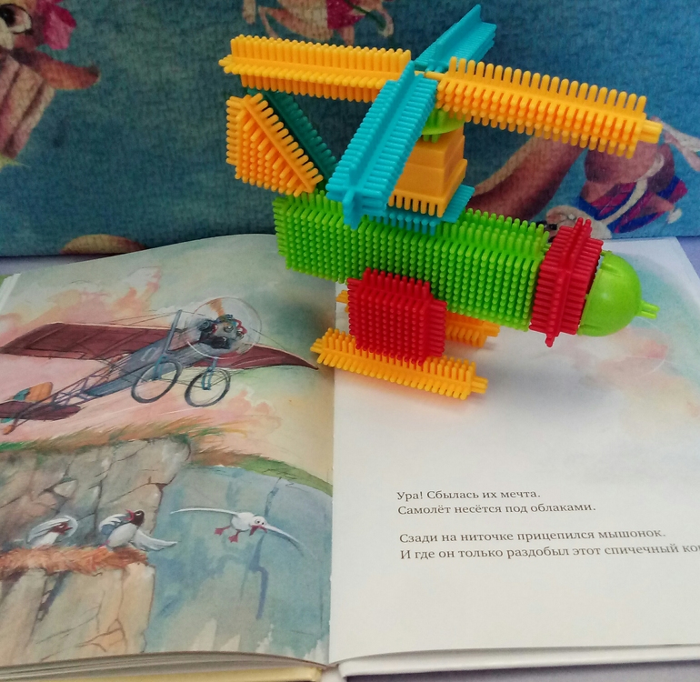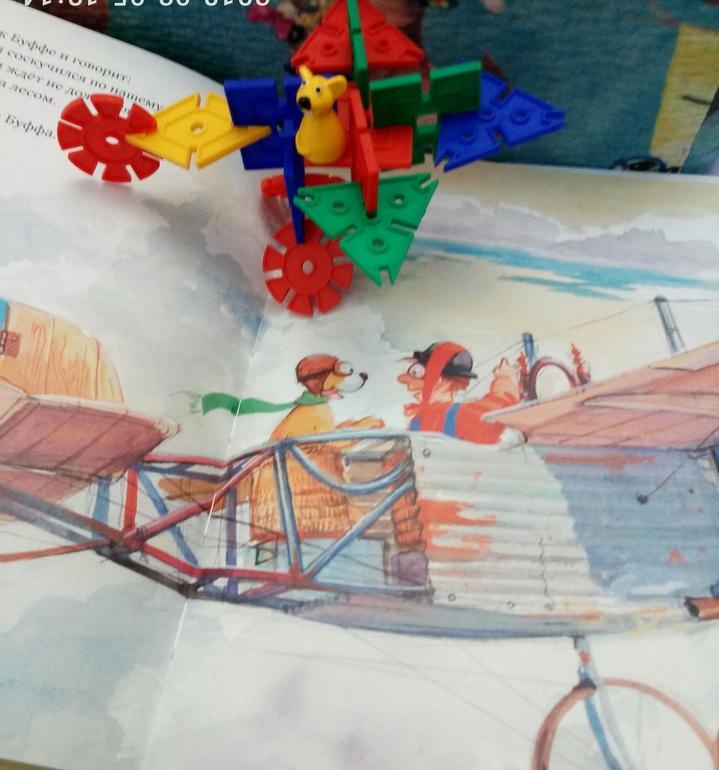 Но он все равно полетит) Ну и опять таки, читая увлекательную историю, ребенок легко знакомится с такими понятиями, штурвал, шасси, элероны)