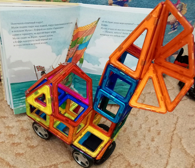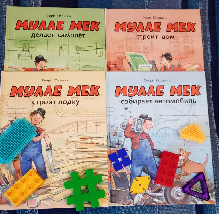 Вообщем, мы с ребенком от книг в восторге, и увлекательно, и познавательно!да и просто читать эти книги не получилось) мы тоже решили, как Мулле Мек из всего, что под руку попадется конструировать и строить) под руку попадались в основном вовремя вытащенные мамой конструкторы)