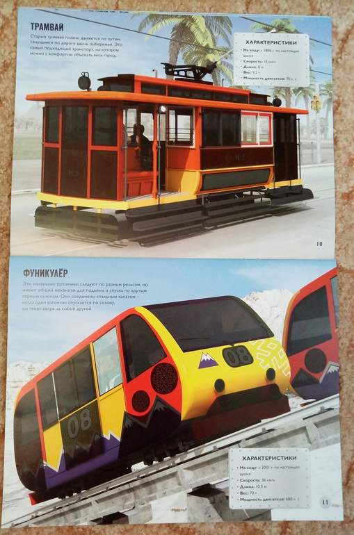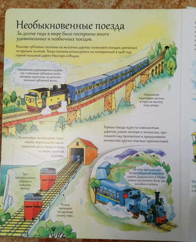 Ну а для тех, кого трудно удивить, есть разворот с необыкновенными поездами, горные поезда, поезда с зубчатыми колесами, снегоуборочные поезда
