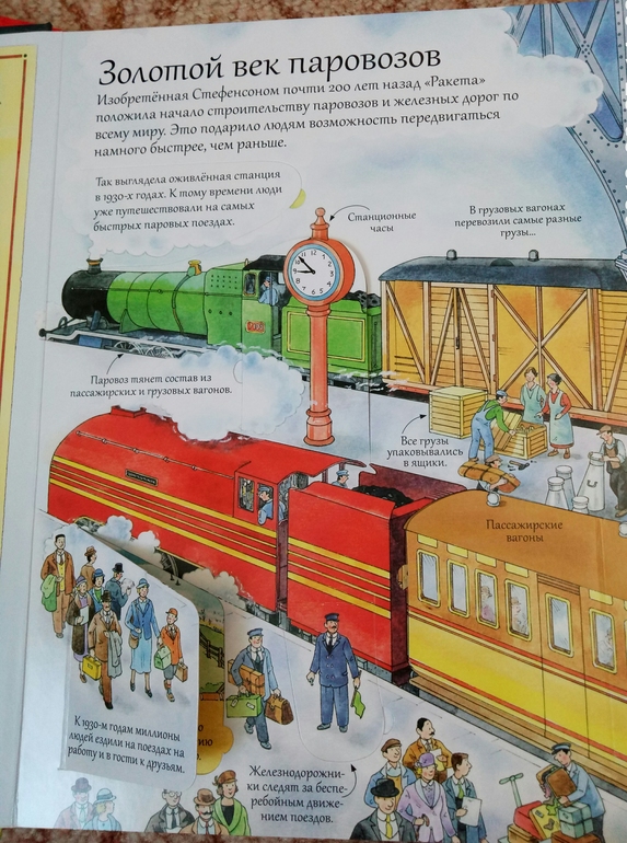 Но у нас больше любима книга из серии книга с секретами Тайны железной дороги издательства Робинс. Мы вообще очень не равнодушны к этой серии) в книге 8 разворотов и 63 окошка) В этой книге именно история железнодорожного транспорта. А началось все ..с лошади)