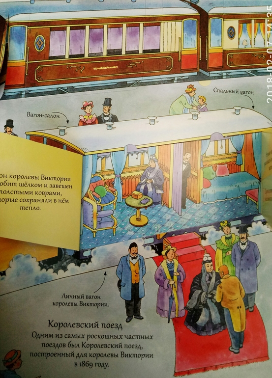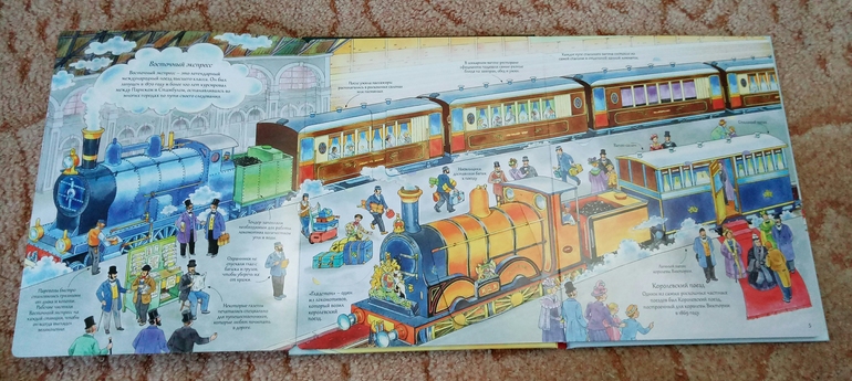 Большой разворот посвящен Восточному экспрессу, про который, наверно, все знаю благодаря Агате Кристи) и Королевскому поезду, и даже можно заглянуть в шикарный вагон королевы Виктории