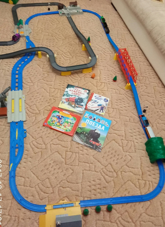 Вот этот поезд сам делал, но , конечно, с небольшой моей помощью) Всего в книжке 20 поездов, есть и несколько очень больших, полностью на весь разворот
