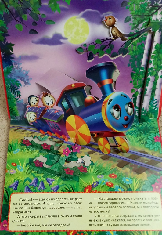 Я очень любила это душевный мультик) и мне очень хочется, чтоб и мои дети знали не только современные мультики..Конечно, глубокий смысл этого мультика, и соответственно, и книжки, больше понятен взрослым, не спешить, не торопиться, успевать любоваться тем, что окружает, но и сыну уже очень книга полюбилась) и он абсолютно сам придумал игру по ней! взял свои любимые разноцветные маленькие мячики,сказал, что это ландыши и несколько дней его паровозики нюхали цветочки)