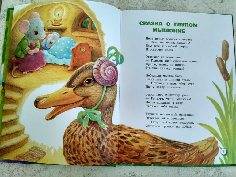 Первая - "Сказка о глупом мышонке", помню Аня её очень любила с 2-3.5 лет, постоянно перечитывали, хотя конечно в нашем старом сборнике нет таких милых зверюшек!!