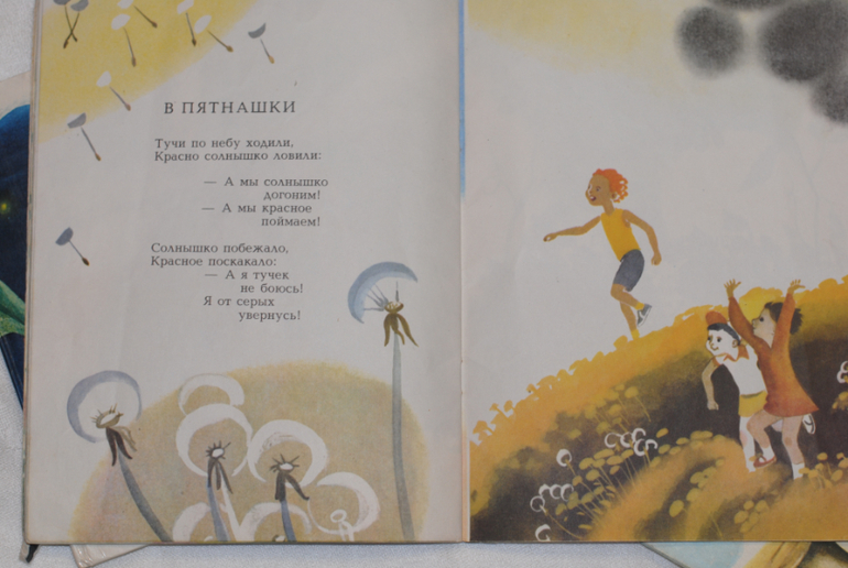 Очень давно мне попался его сборник "Белый барашек", на фото он с кузнечеком (обложка нам не досталась). И мы его сильно полюбили. Нежные, добрые, ритмичные и запоминающиеся стишки, которые мы читаем уже несколько лет. (Обложку утащила в сети)