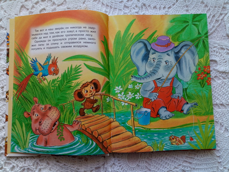 Читали книгу моего детства...без картинок слушала с интересом, но возмущалась, что Чебурашка неправильный, бросили...У нее в группе д/с есть игрушка Чебурашка, они его рисуют, лепят, изучают круги))), одним словом, дочка привыкла к мультипликационному образу Чебурашки)))