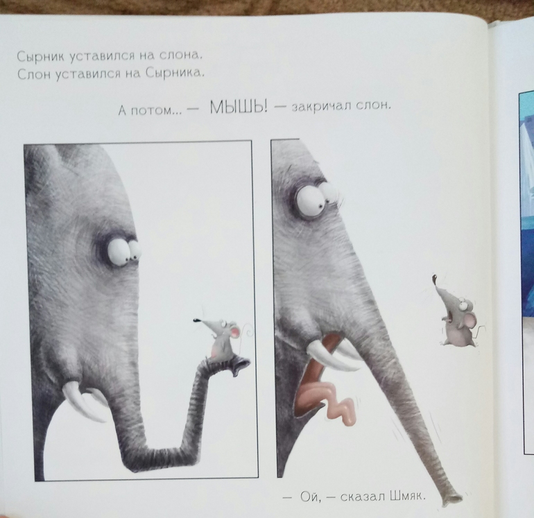 но из за небольшого происшествия, как выяснилось, все таки слоны мышей боятся, а испуганный слон может сломать бассейн с пигвинами.. и пингвины к Шмяку не вышли..