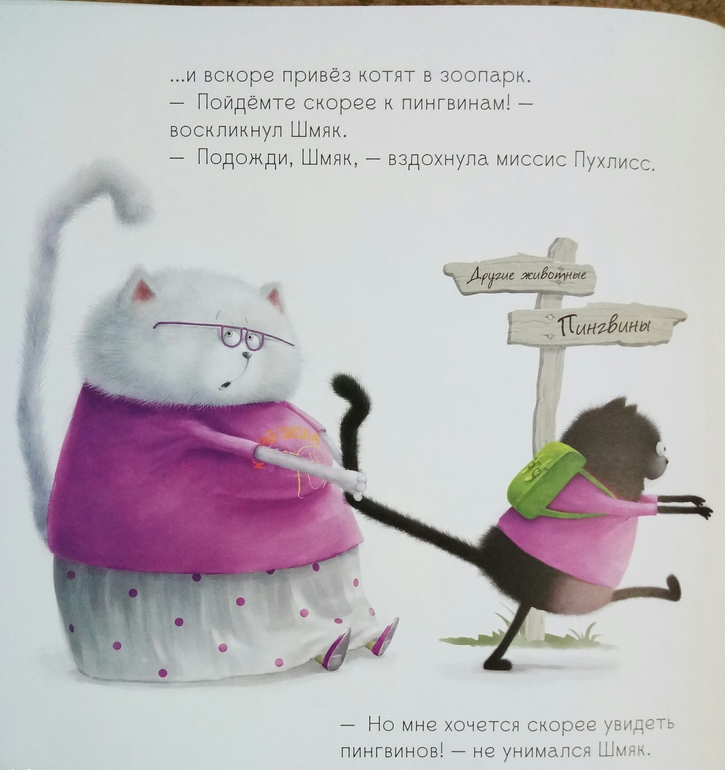 Тут Шмяк вместе с одноклассниками и с учительницей, кстати тоже колоритнейшая особа, миссис Пухлисс поехали смотреть животных в зоопарк.