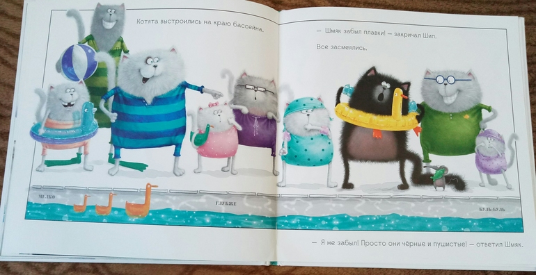 Вообще то я всегда была уверена, что нам этот котенок совершенно без надобности, обзоры на него даже не смотрела. Думала, ну что за чудной такой котенок?!! Но как то в библиотеке попался мне один экземплярчик на глаза, Котенок Шмяк учится плавать, и решила попробывать, любопытно мне стало) И я влюбилась) Это не чудной, это совершенно чудесный, обаятельный, очаровательный котенок!