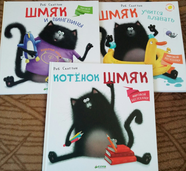 Знаменитый котенок Шмяк автор и художник Роб Скоттон, издательство Клевер.