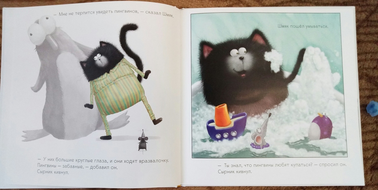 И последняя на сегодняшний день книжка Шмяк и пингвины, выбор сына)