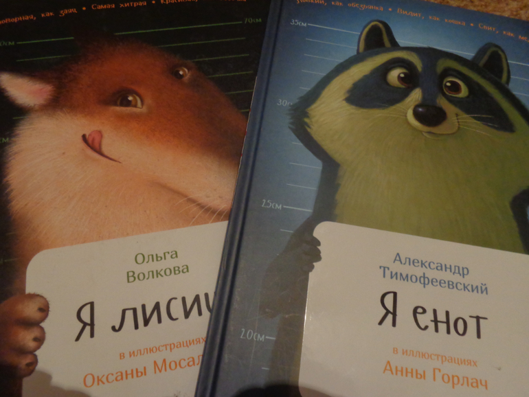 Я енот и Я лисица. Серию не собираю, но понравившиеся книги беру. Иллюстрации в этих двую мультяшные, но информация занимательная!) ( по 68 руб в тведром переплете!)