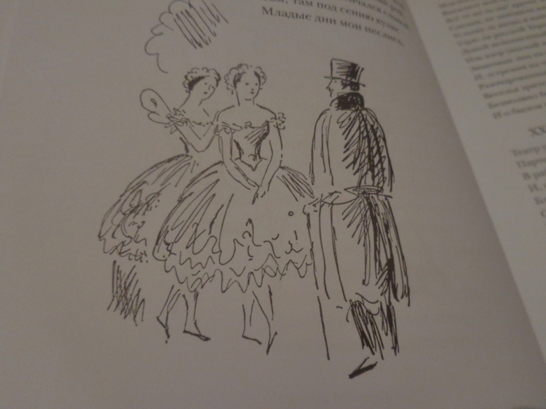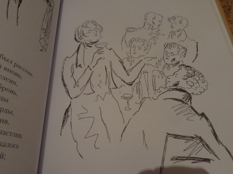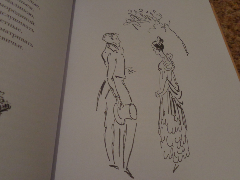 Насчет Евгения Онегина сомневалась больше всего! Как никак третий Онегин у меня, да и цветных иллюстраций, если верить отзывам в Лабиринте, всего 12...Но зато ч/б зарисовок в книге предостаточно! ( 421 руб!)
