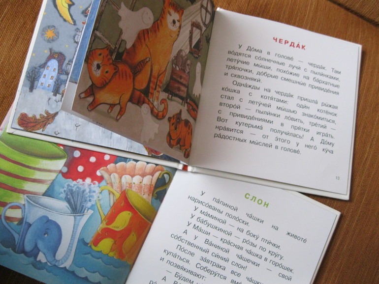 Из книг Симбирской у нас есть "Жил-был дом" и "Чья чашка лучше" (но мы хотим ещё!!! Костя спрашивал, когда же я куплю "Бултых", например). Очень советую. Если вы хотите взять что-нибудь из серии на пробу, берите Симбирскую, не пожалеете. Хорошая, солнечная, лёгкая, с добрым юмором.