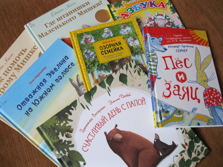 Чаще остальных читали "Пес и заяц" (меня, если честно, эта история не впечатлила, но Костю однозначно зацепила - книга ушла в игры, машинки получили имена героев забега, просил почитать с завидным постоянством) и "Счастливый день с папой" (читали в основном с папой, с обязательными обнимашками в конце - какие же они милые, мои мальчики)).