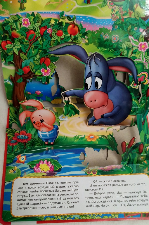 Я совершенно спокойно смотрела на страсти по книжке про мультяшного Винни -Пуха, и думала, как хорошо, что мне не надо) с дочкой как то обошлись другой версией, с рисунками Шепарда, и мультик мой младший не оценил.. сначала.. а потом как накрыло) Смотрит, цитирует,самые любимые места по сто раз пересматривает) и я поняла, нужна хоть какая нибудь книжная версия!Тут на помощь пришла моя любимая серия издательства Умка Союзмультфильм. Уже сто раз говорила про нашу любовь к этим панорамкам) они качественные, плотный ламинированный картон, закругленные уголки, замечательные, яркие рисунки, узнаваемые персонажи, вполне читаемый текст, который, правда, все равно по ходу разбавляешь фразочками из мультфильма) Книжка по третьей части мультфильма Винни Пух и день забот, про день Рождения ослика Иа - Иа