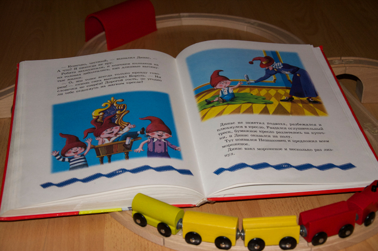 Ежели говорить про Скарри, коли мы начали с него, то у нас страниц пять заклеены скотчем, переплёт чуть перекошен! От того книга не стала менее любимой, Рося до сих пор, при случае, несет её на вечернее чтение! Хотя вырос уж! Стали читать и про "Остров сокровищ" ,и про античных героев! Но Скарри самый любимый!