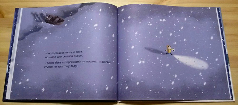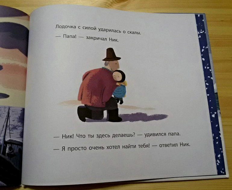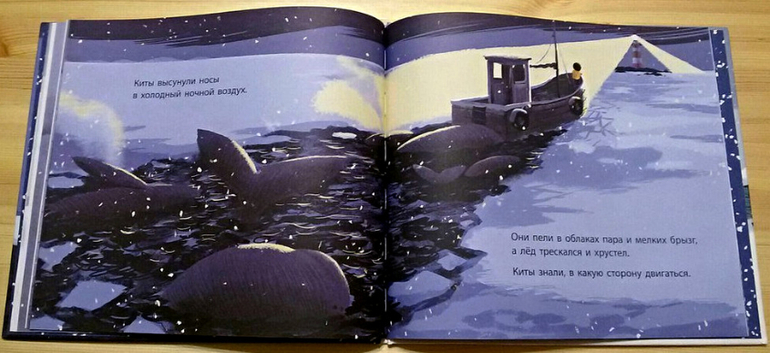Вторая часть мне показалась более серьезной. Я даже сама начала переживать, представив себе одинокого мальчика, идущего в пургу по замерзшему морю в надежде отыскать своего папу. Тут и состоялась новая встреча Ника и кита, который пришел ему на помощь. В ту ночь рыбаки спасли папу, а кит спас мальчика.