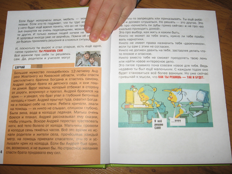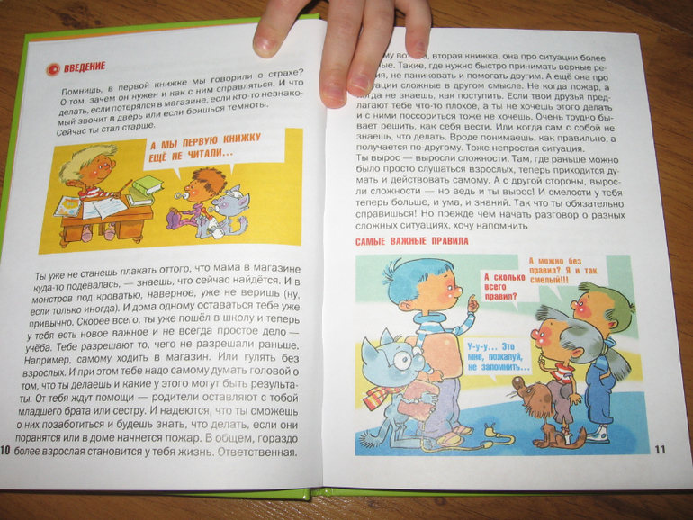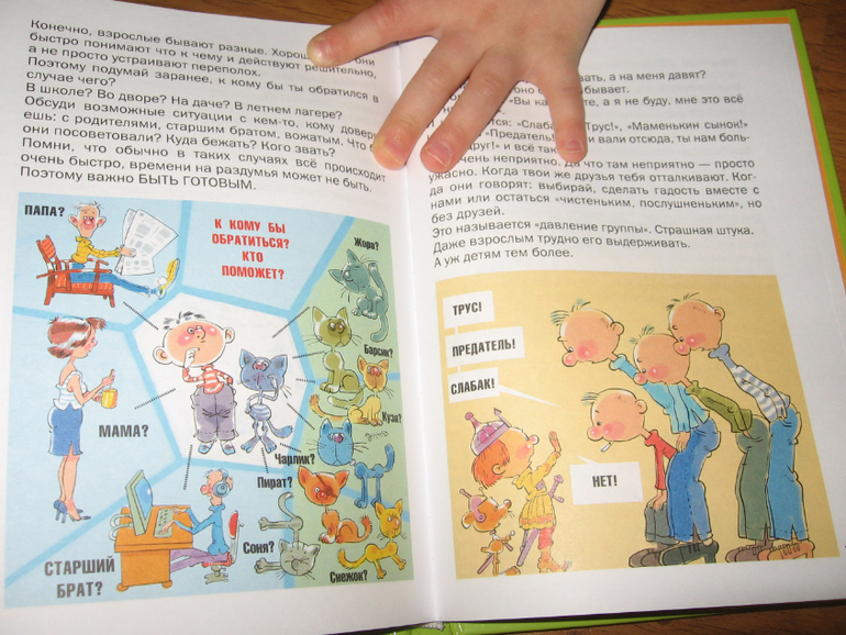 Конечно, не особо приятно что ребенок уже начинает подвергать родительские слова сомнению, но он же растет, взрослеет, и это нормально. Главное ведь, что пусть не только с моей помощью, пусть и с помощью литературы, но понятия о безопасном поведении, о методах решения конфликтов и т.п. у него формируются.