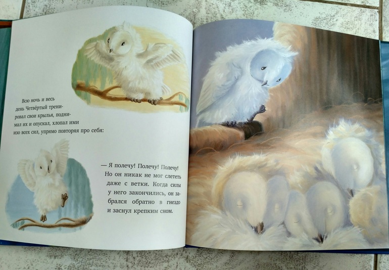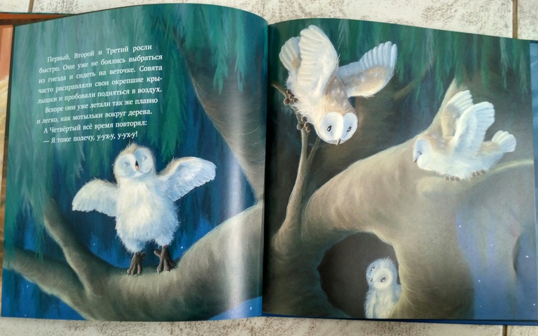 И вот однажды, сильный ветер начал ломать Иву, в которой жили совята, нужно было срочно улетать. Но как же младший?? Старшие забеспокоились, ведь он летать не может!