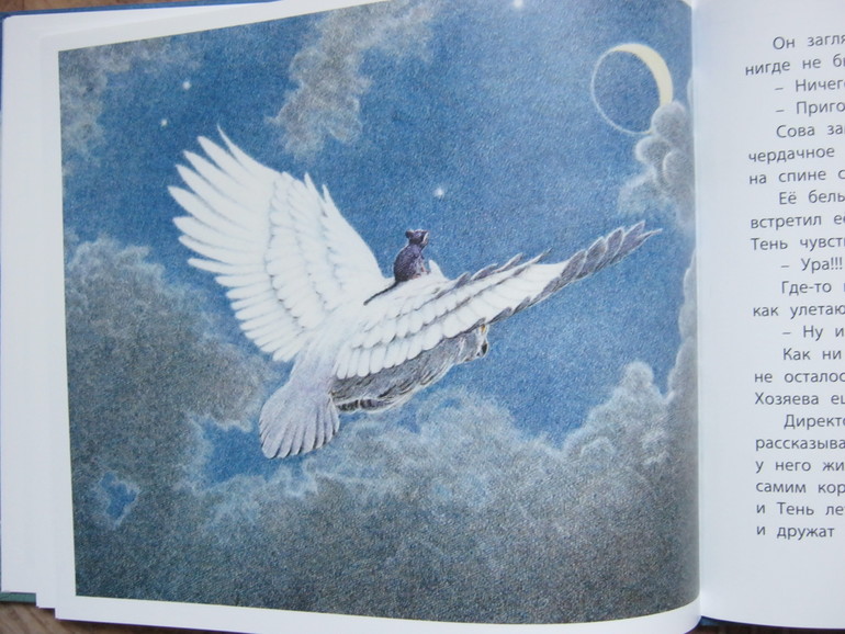 Пока я радовалась, разглядывая первые цирковые развороты, то даже забыла про название и обложку. Еще чуть-чуть и я нафантазировала бы себе, что это книга про воздушных гимнастов ) Но тут как раз появилась Тень отца Гамлета - белая полярная сова по кличке Тень, сидящая в клетке и совершенно не умеющая летать.